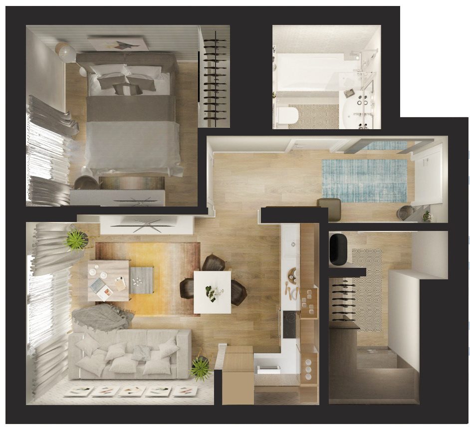 Small apartment design in "Obolon Residences" Kiev, Ukraine 2019