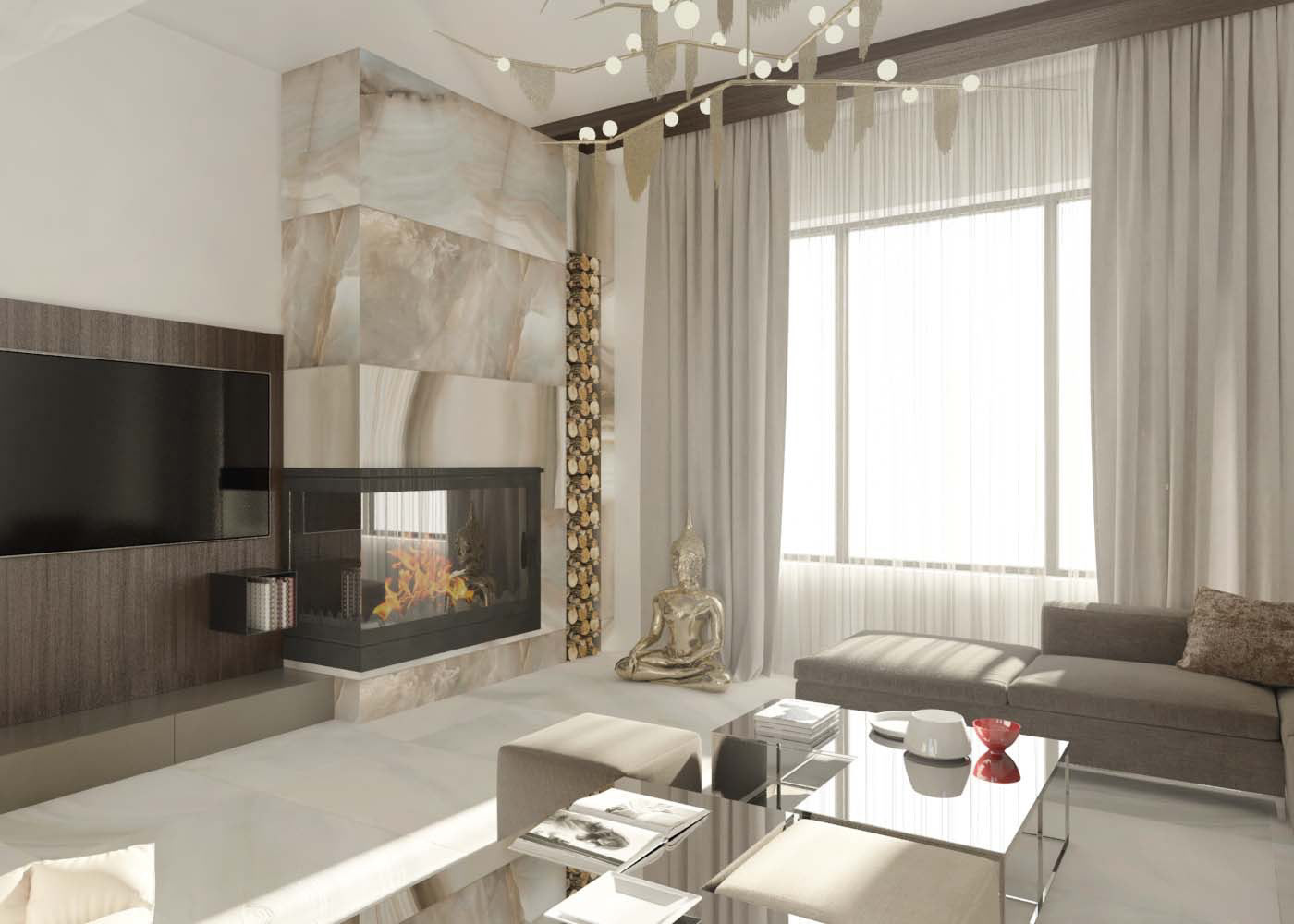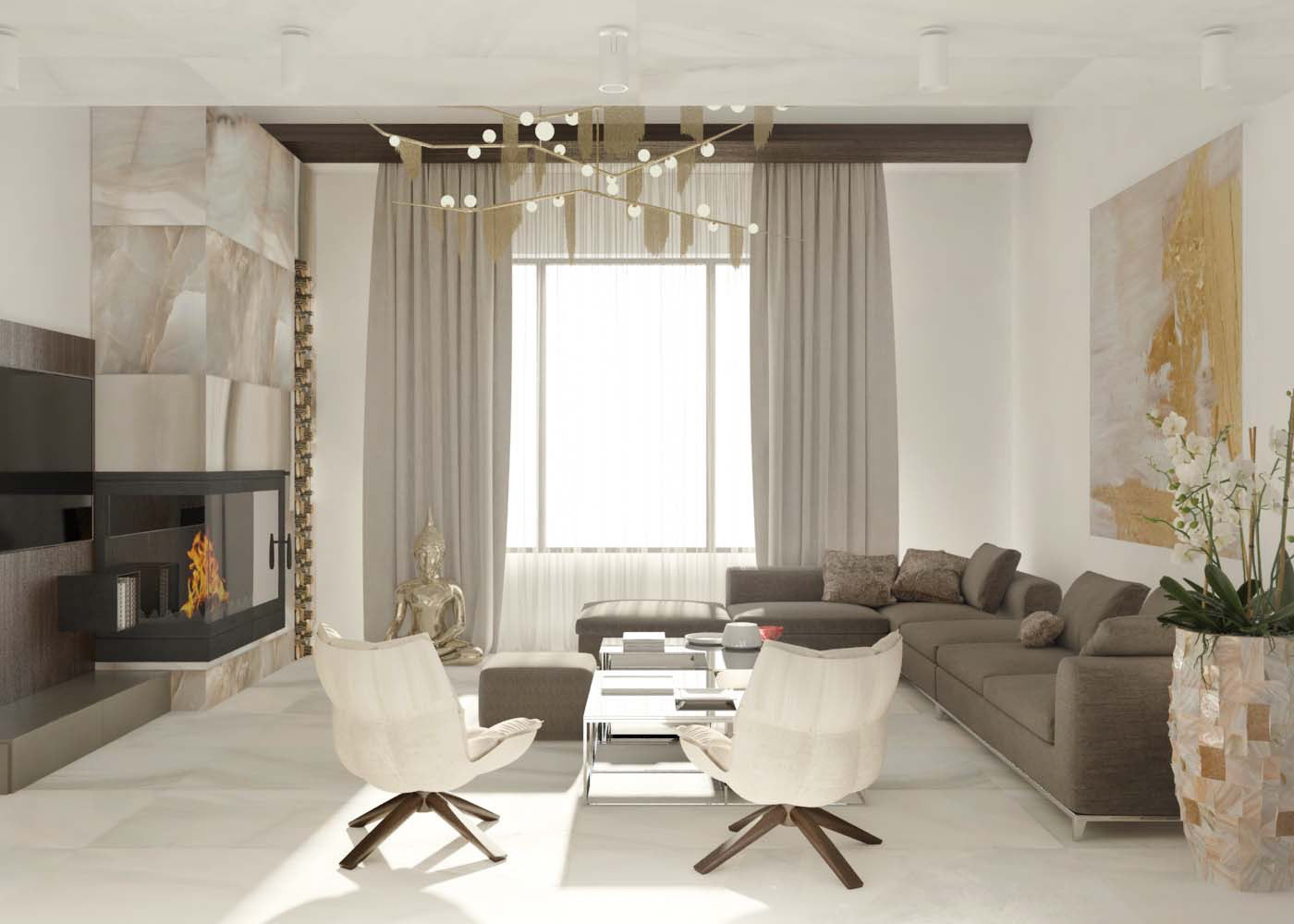 This is one of the late works. Private house for couple. White and beige colours bring freshness and calm attitude to the space, minimal style and exquisite details in decor.